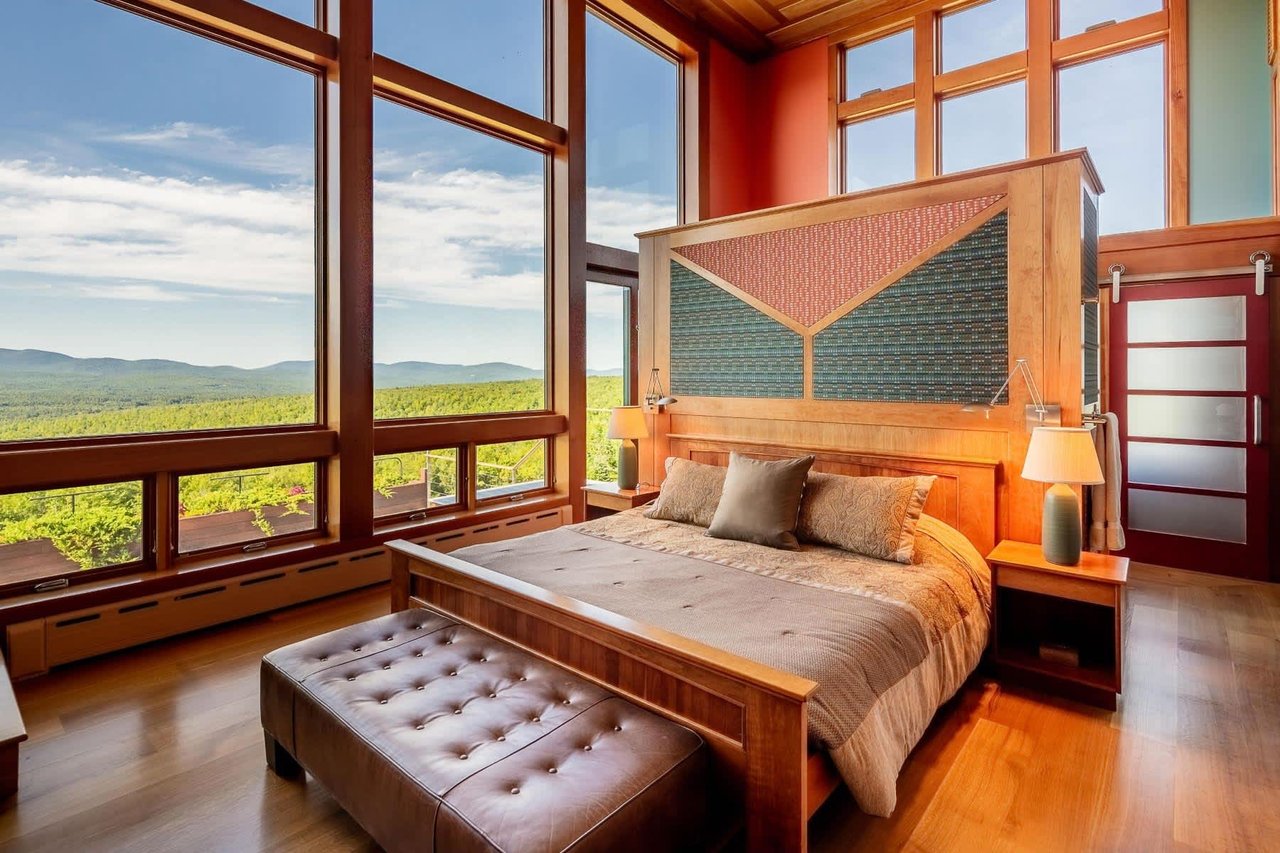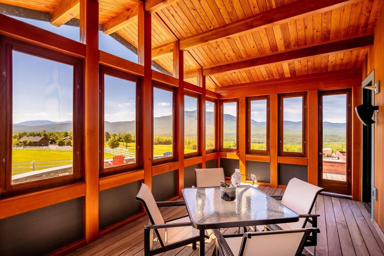 A stunning compound set in Western Maine, Windledge Farm is set on 308 acres of multifaceted land with staggering views of the protected High Peaks of Maine. The 4.500 sqft contemporary main house, designed by renowned architect Frank Robinson, is an homage to Frank Llyod Wright and a showcase of impeccable design, outstanding quality and craftsmanship, while incorporating the surrounding outdoor space, making it a true work of art. Rife with detail, this gorgeous open-concept home offers a retreat for those that require state of the art amenities and security yet yearn for the feel of comfort, serenity and privacy. The equestrian component of the property, designed by a veterinarian with assistance from the Knickerbocker Group, is an equine enthusiasts haven. The handsome 60'x48' stable offers all the amenities and details needed for the optimum care and comfort of horses. The first floor contains eight expansive stalls, tackroom, heated wash bay and a state of the art medical room and office. The second floor hosts a beautiful 1 bedroom living quarter that shares the same quality and craftsmanship and expansive views as the main house. Outside there are 10 paddocks, 4 large turnout pastures, approximately 7 acres of hay pasture as well as access to miles of wonderfully designed trails that access the far reaches of the property. In addition, there is a 36'x60' barn for agricultural equipment, tractors, ample hay storage, as well as a large workshop.