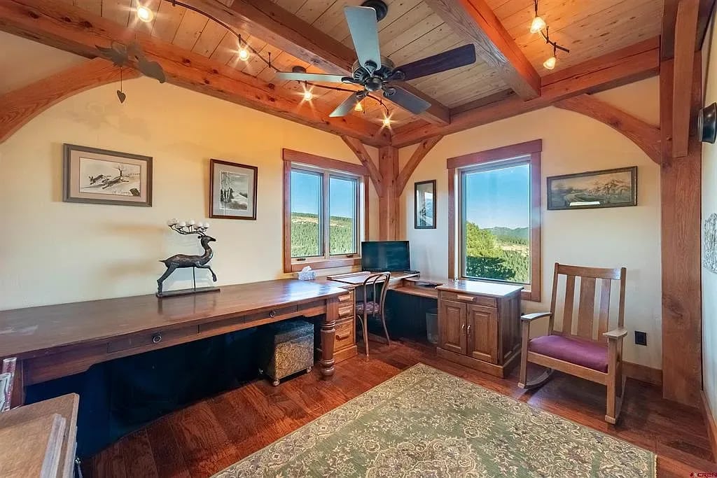 Mountain Memories Colorado Unrivaled Views, Luxury Living, and Endless Outdoor/Horseback Adventures this 75-acre estate that borders over 150,000 acres of Perins Peak Wildlife, BLM, and Sand Juan National Forest that overlooks Durango, Colorado. This trophy property has 360-degree views of the surrounding mountains, a spacious timber frame home, barn ready for horses, a separate guest house, and an abundance of outdoor amenities, this property truly has it all. On top of the views and luxurious features Mountain Memories is located in a quiet, secluded setting only minutes from buzzing downtown and a short drive to winter skiing at Purgatory. Main House 3-bed | 4.5 Bath | 5,700 sq.ft The main house features 5,700 square feet of living space, including a grand entrance family room with 32’ foot of floor to ceiling windows, a chef's kitchen with Wolf, GE, and KING appliances, and a private office. There's also a dry sauna, a workout room, a loft game room, and wine storage. Don’t forget the incredible views in every room in the home that are unrivaled anywhere else in Colorado. Barn 2,688 sq.ft | Guest House 2-bed | 1-bath The guest house attached to the horse-ready barn adds an additional 1,200 square feet of living space, including a full kitchen equipped with all stainless steel appliances. Live your finest Colorado outdoor life with private access that borders over 13,000-acre Perins Peak Wildlife Area. Barn footprint 56'×48 If you're looking for a property that offers the best of both worlds - luxurious living and endless outdoor adventures - then Mountain Memories Colorado is the perfect place for you. Call today to schedule a private showing!